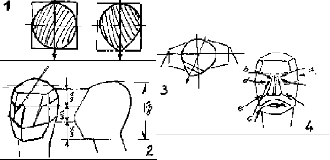 Mit dieser oval-spitzen Form legt man zugleich die spätere Blickrichtung (Kopfdrehung) und die Neigung des Kopfes fest. Das ist ein sehr wichtiger Punkt. Mit einer leichten Drehung und/oder Neigung des Kopfes wird der spätere Gesamtausdruck der Figur bestimmt - der Kopf regiert die Figur. Eine leichte Drehung und Neigung des Kopfes bringt Nachdenken, Überlegen, Interesse, Aufmerksamkeit usw. zum Ausdruck - die Figur "lebt" , während ein gerades, genau stur nach vorn gerichtetes Gesicht immer einen steifen Eindruck hinterläßt.
